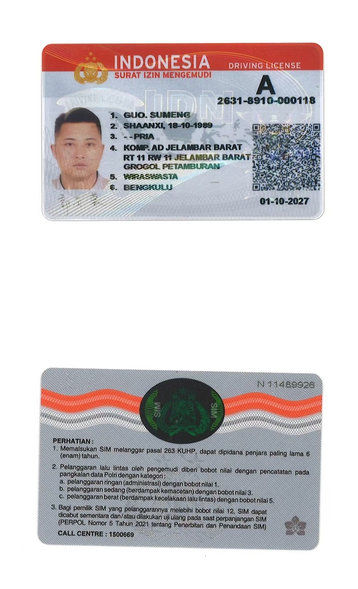 咸陽市/西安市/西咸新區/證件翻譯/成績單翻譯/戶口薄翻譯/印尼駕照翻譯模版